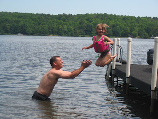 Busy, Busy Weekend! Grampa's birthday, Nathan's Baptism, Hunter's baseball game, Father's Day, Jayme's Graduation and we still had time to go to Nana and Grampa's house 3 days in a row to swim in the lake! Caroline loves jumping in!!!! She didn't even want to come in when it started to rain on Saturday...she just kept on jumpin!!! When it started to thunder we headed inside.....and Caroline had fun dressing up. Cooper took his naps when he could...which was in the car going from one place to another.....this left us with a very cranky boy on Sunday when it all caught up to him. Construction update: No action today.