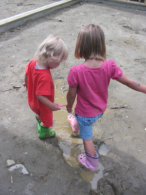 Warning: Lots of pictures of the kiddos.They received new splash boots from their Great Auntie Norma and we just happen to have some mud around......
