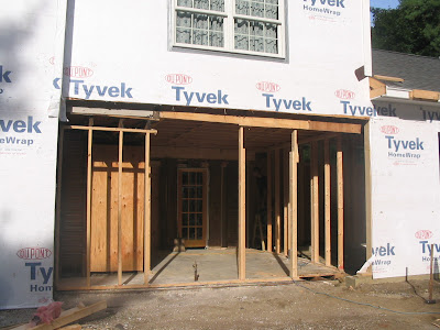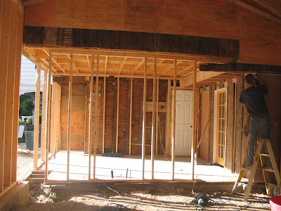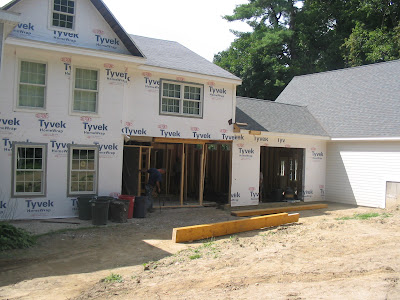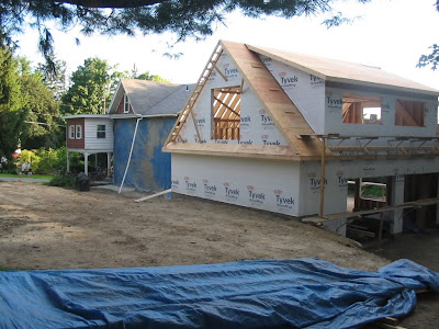 So...we are making progress.....the new addition went up fast....gutting the old part of the house and practically re-building is the "not so fun" part. The picture below is the side of the house....we weren't suppose to go this far but this project has taken on a life of its own....."we should do this now while the crew is here" "we should do it right" "if you want this then we have to do this"