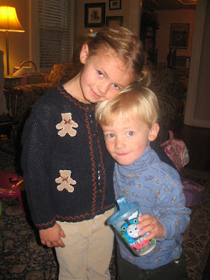 Its cold, and raining.....snow this afternoon....I'm not ready for winter. Don't get me wrong, I love snow but around here winter starts in October and doesn't end until May...is it too early to start planning our March vacation to Charleston? I have a feeling the next couple of months will be busy for us......are we crazy to think we'll have a functioning kitchen by the Holidays? Only time will tell....until then....I will be busy packing away the flip flops and shorts and getting out the sweaters, hats and mittens. Below is a picture from this morning....can they be any different?! Caroline's hair is turning darker with her brown eyes....Cooper is so handsome with his blonde hair, blue eyes. Caroline has been up for hours this morning....and I had to wake Cooper up to get Caroline to school.