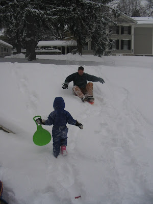more snow....and the snow blower broke down....so I took a turn shoveling our driveway....and within 10 minutes I had the neighbor snow blowing it for me....so, after being outside for 20 minutes I came in..."the driveway is done!" Rob just shook his head. So, now I had time to try a new recipe that I had seen on Meg's blog Whatever....apple puff pancake....yummy! Mine doesn't look as pretty as hers, but it is delicious!