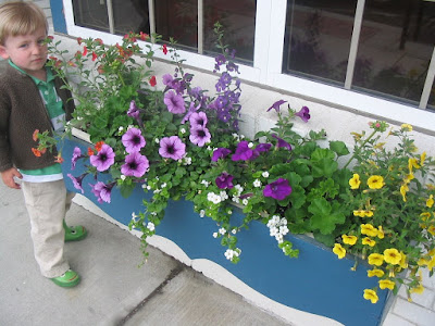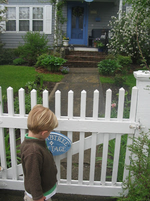 I cherish these days....coop puts on his splash boots, i grab an umbrella, and we walk. We notice new flowers, talk to neighbors who we haven't seen all winter, coop finds all the good puddles.