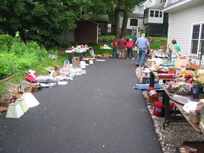 Friday night, the garage was full and all set for the tag sale....praying that it wouldn't rain.